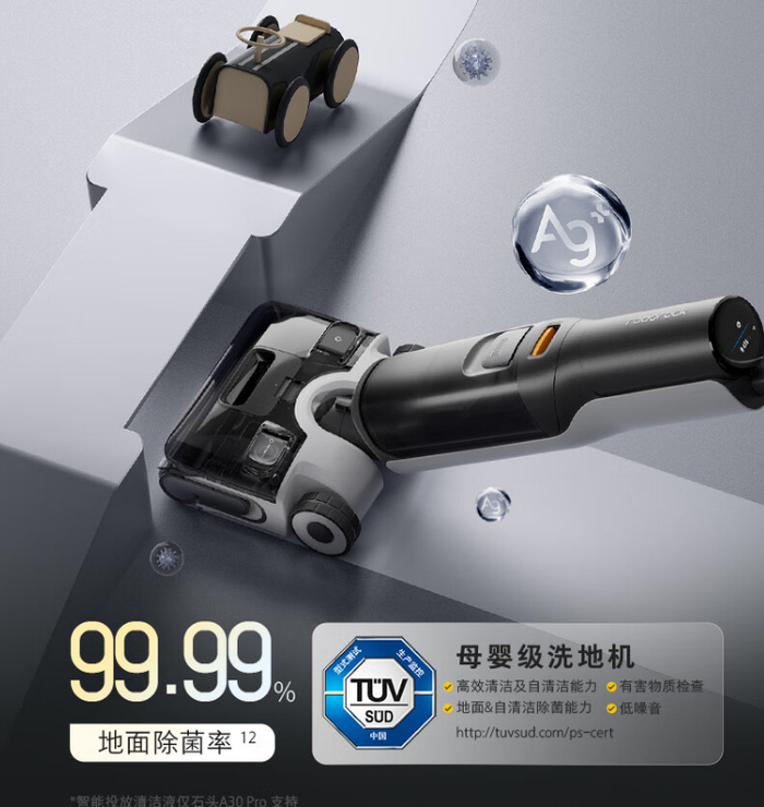 石头除了清洁液外,还采用了全链路银离子24H抗菌设计;
