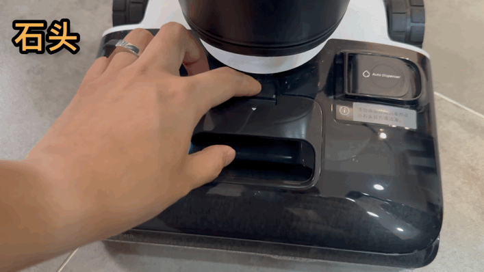 而石头则支持清洁液自动投放,清水箱上设计了独立的清洁液舱,可根据地面脏污状态智能增减用量,一次添加一个月免维护,更省心。