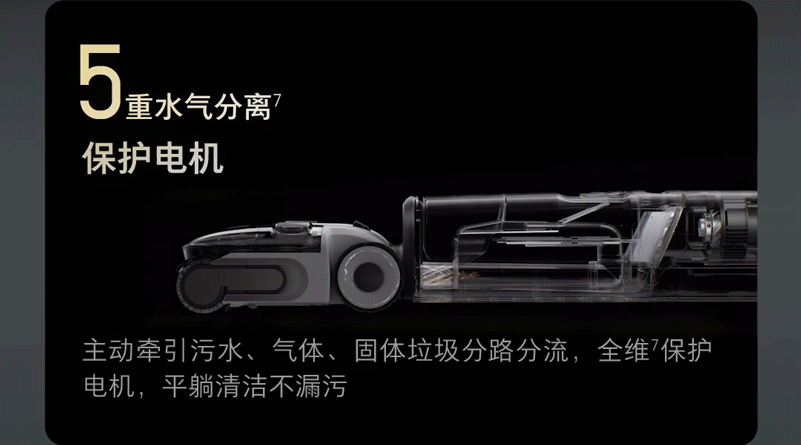这里还要提一嘴的是,得益于专门的水气分离设计,石头和追觅在躺平工况下,吸力都是可以保持不变的,而添可会降压,可能会影响清洁效果。