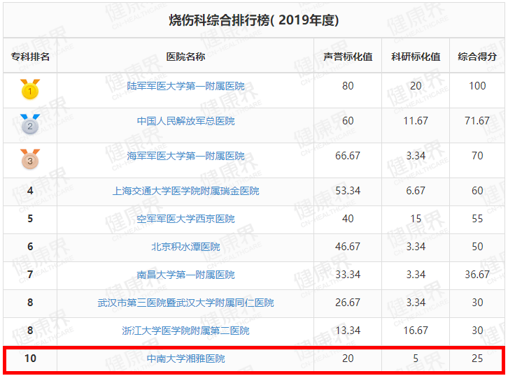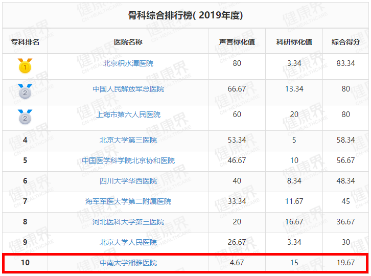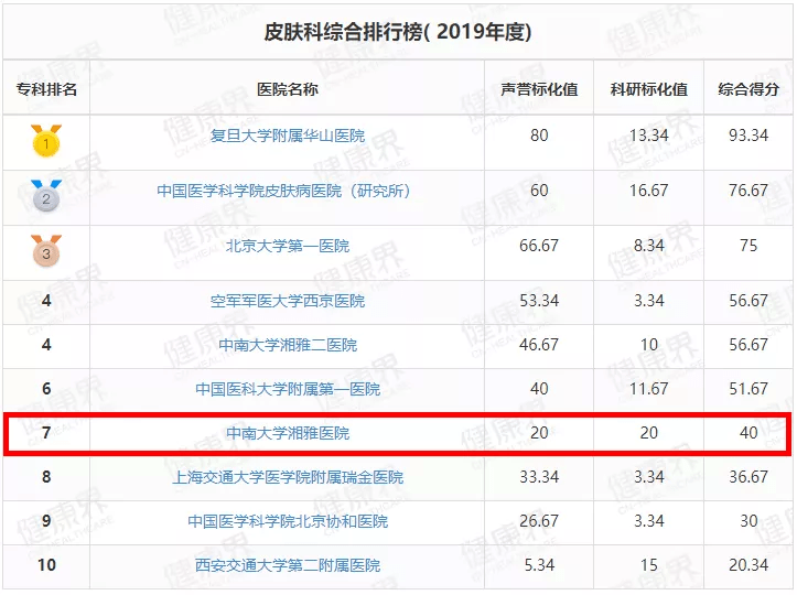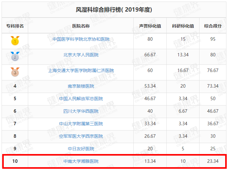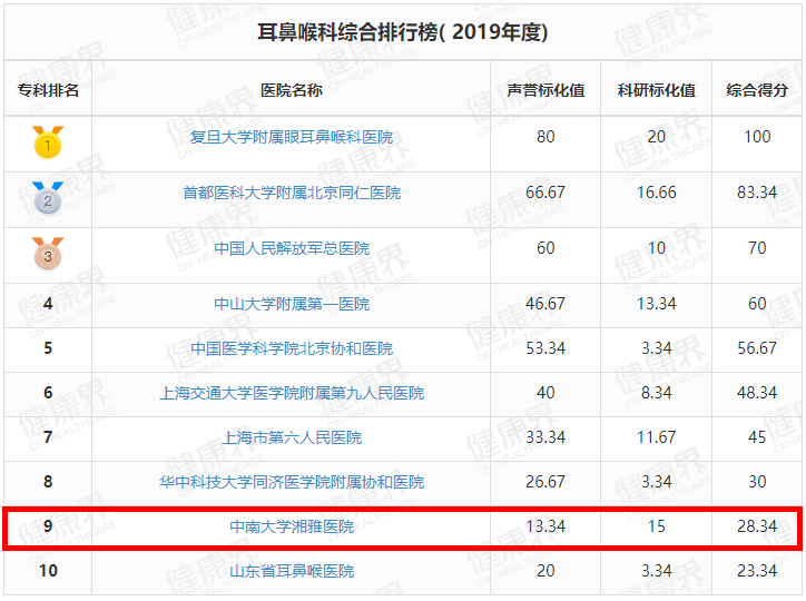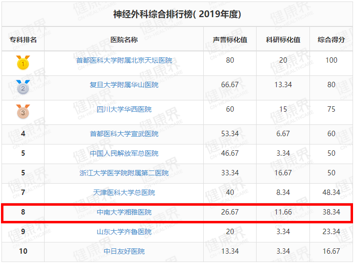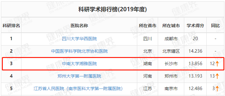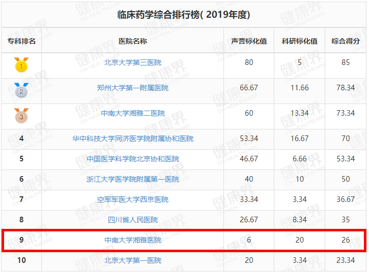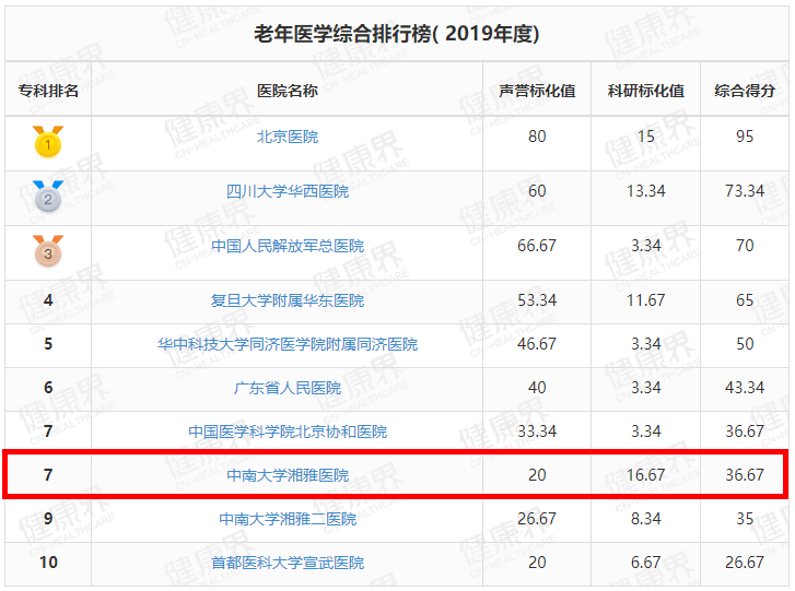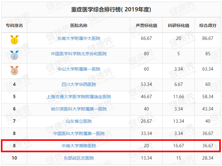 湘雅医院位列全国第3