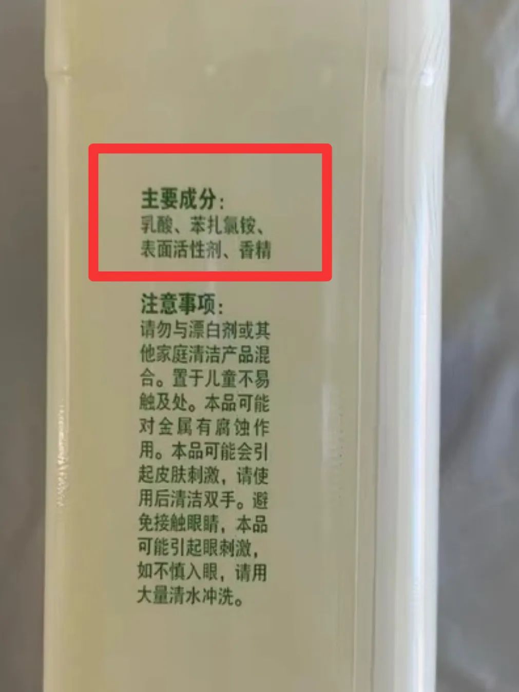 核心成分:乳酸、苯扎氯铵、表面活性剂