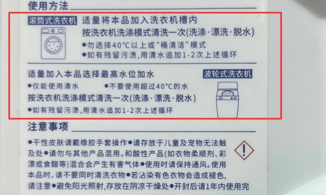 但想清洁过程更简单,用时更短,建议认准有「含氯化合物」的洗衣机清洁产品。