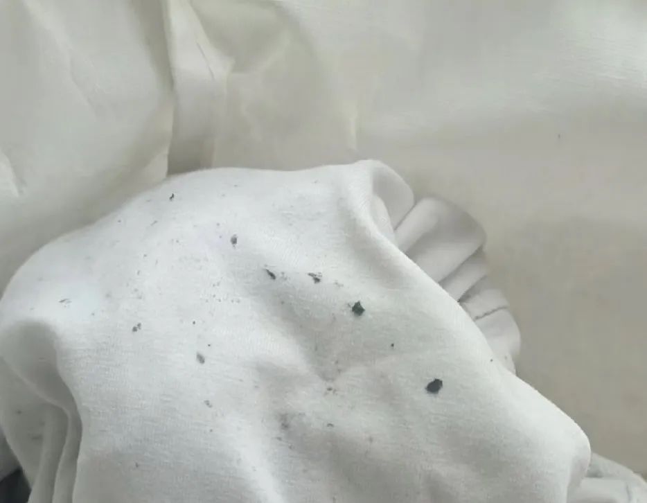 放进洗衣机,洗完之后衣服上总带着一片片黑屑,摸起来黏糊糊的。