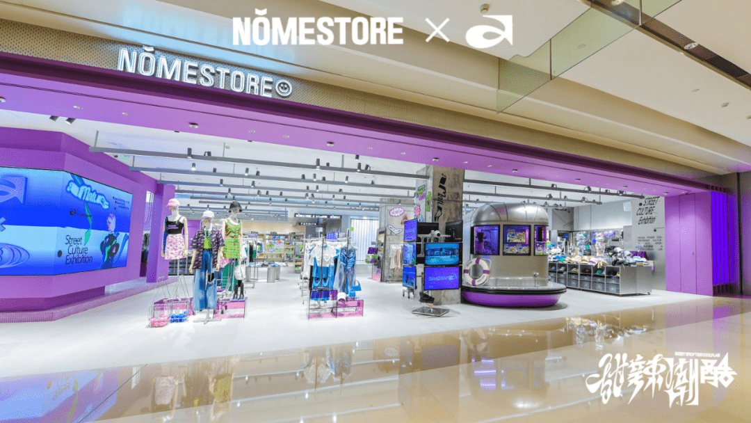门店风格方面,NǑMESTORE以紫色和灰色为主视觉色,同时根据不同的选址,融入运动、科技、工业、太空等风格元素,让空间的立体感、可辨识度更强。