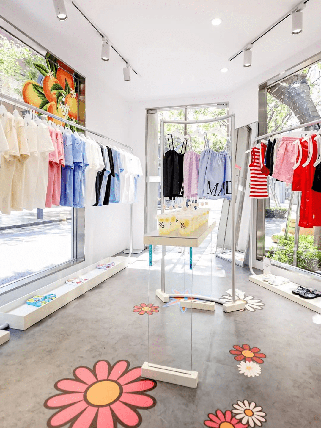 门店设计延续产品风格,品牌超级符号“小除号➗”醒目、主打质感上乘的低饱和度莫兰迪色系。2022年进入中国市场,已进驻上海苏河湾万象天地、北京朝阳大悦城、重庆万象城等标杆商场。