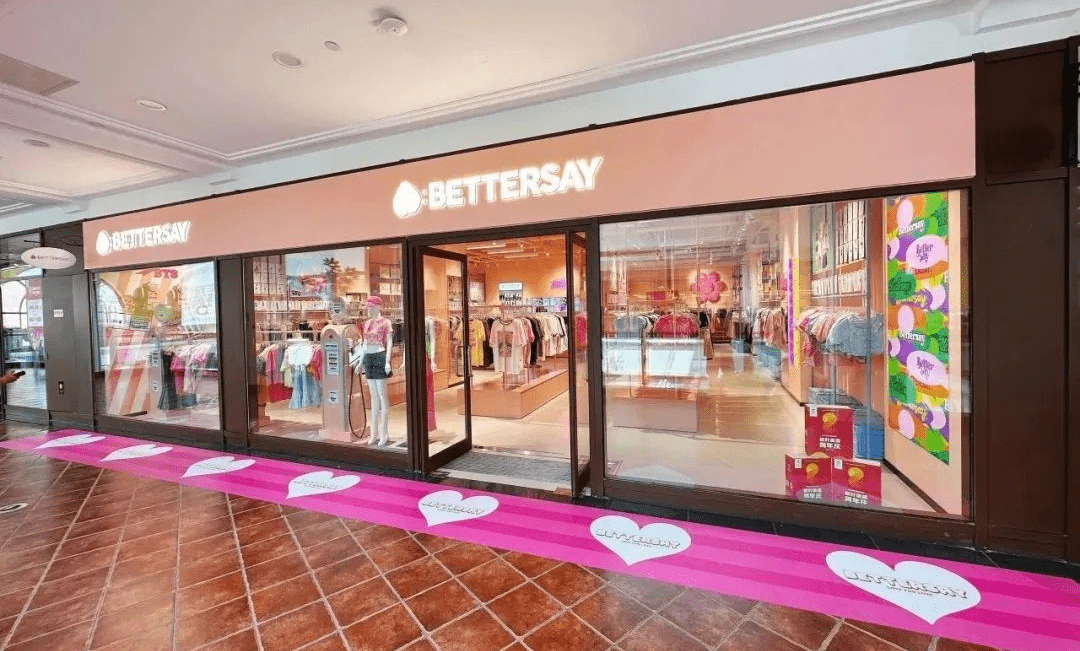 对比市场上同类型的品牌,BETTERSAY拥有着平价、亲民、百搭的多重优势。门店主要以粉色为主基调、以玫红色为辅助色,呈现“甜酷少女风”的装修风格。与色彩鲜艳的服装相呼应,为整个空间添满氛围及少女感。目前已开约50家店,2023年计划门店数突破100家。