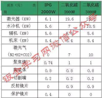 举例:切割2mm 的不锈钢累计50000 米的生产费用及约计时间周期(因薄板打孔时间及极短及空程且无法统计,且每个企业生产安排不同,由于属于横向效率及成本比较,所以对统计结果的比较影响不大,上下料时间不计算在内)