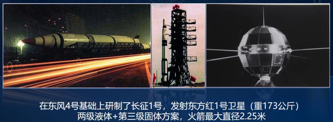 20 世纪 60 年代,我国在东风四号导弹的基础上,成功研制出首枚运载火箭——长征一号,并将重达 173 公斤的“东方红一号”卫星送入太空。长征一号采用两级液体火箭加第三级固体火箭的结构,箭体最大直径为 2.25 米,标志着我国实现了从导弹技术向航天运载火箭的跨越。