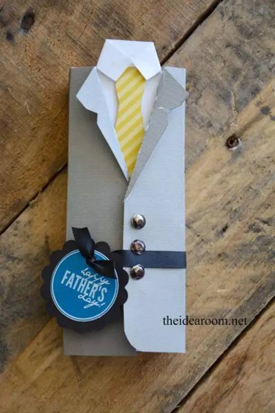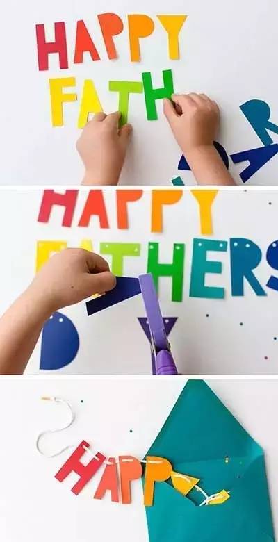 用线穿连在一起放入信封,仔细观察爸爸的惊喜表情吧。