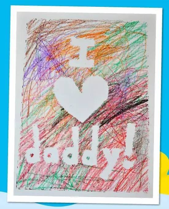 画纸上贴上“我爱你,爸爸”,然后让孩子随意涂鸦吧,涂好后撕下贴纸就可以啦~