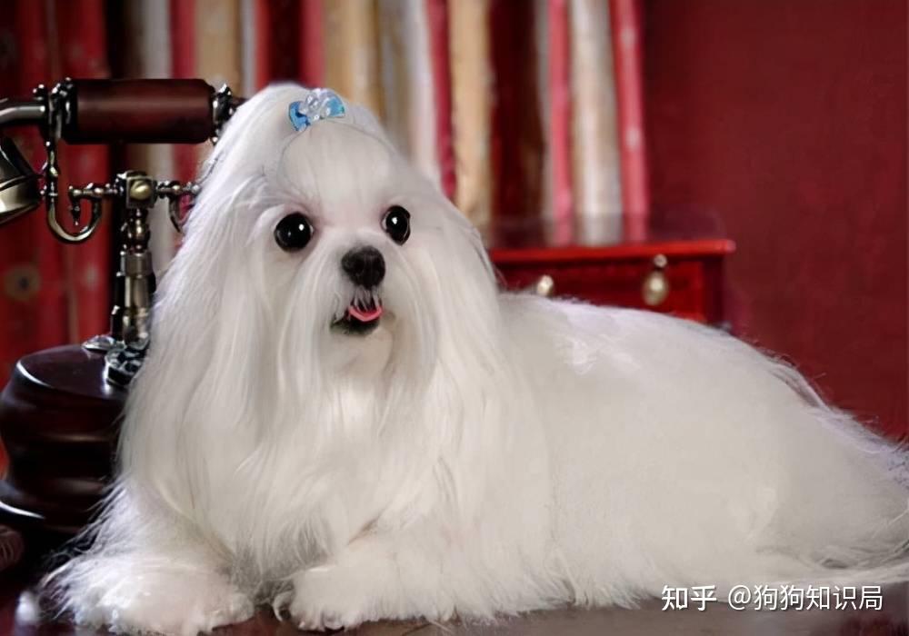 【9】马尔济斯犬:温和优雅,从头到脚洁白如雪,毛发很长,但是不怎么掉毛,一般宠主会选择将它的毛发扎起来或者剪短。