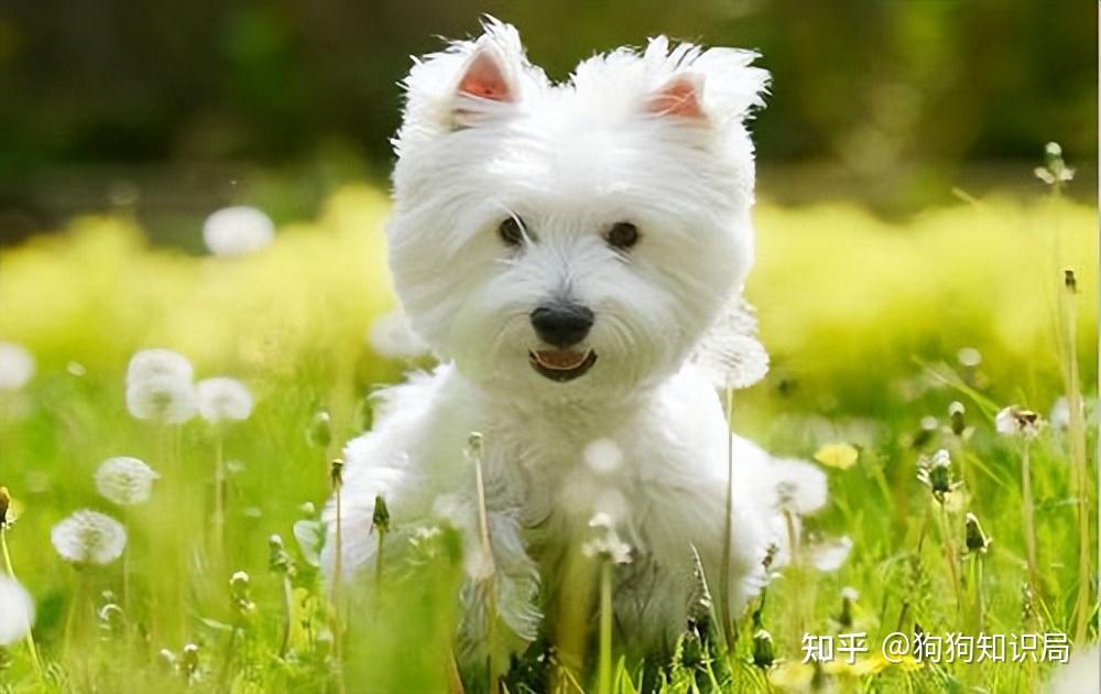 【10】西高地白梗犬:白色体毛,脸颊毛直立,毛质硬而且滑顺,性格很活泼可爱,对主人友好忠诚但是有点倔,习惯公寓生活,是令人愉快的伴侣。
