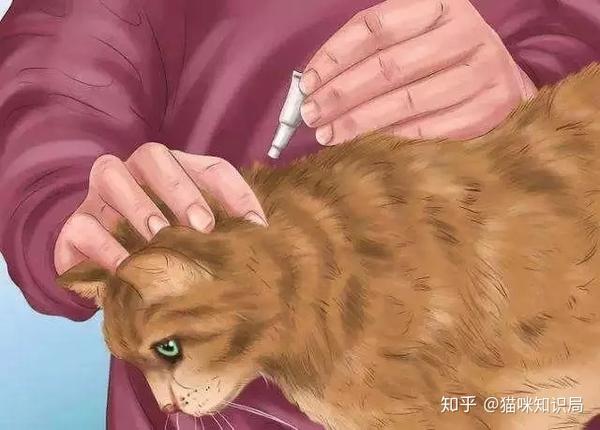 在滴体外驱虫药时要注意沿脊椎从猫的脑后跟一直到尾部(非尾巴),轻轻向两边拨开猫毛漏出皮肤,最好用细针头一点一点将滴剂滴在露出的皮肤那条线(大约5-10个点)。千万注意滴剂不可全身随处滴,严格滴在脊柱线上点是因为这些部位舔舐不到,不会造成误食中毒。