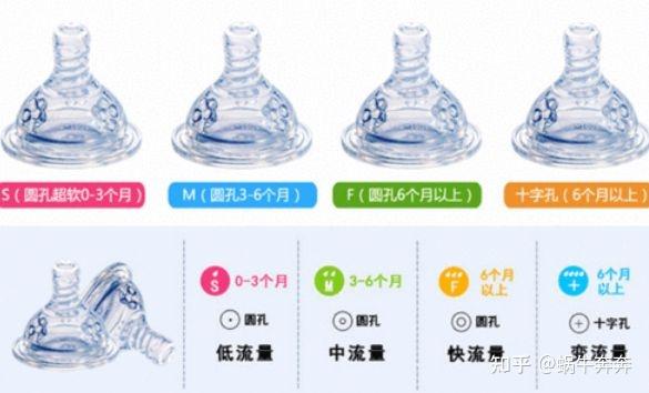M号:有两个孔,适合3-6个月以内的宝宝,属于中速。