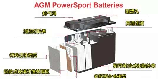 与EFB电瓶相比AGM更加先进,其极板不是浸泡在电解液(硫酸)中,而是将电解液的大部分吸附在多孔的玻璃纤维隔板上。另外,AGM在充电过程中产生的气体会被内置的化学物质吸收,因此电瓶外壳完全密封,连排气阀都没有。