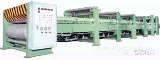经上胶后的纸板需在一定的温度、压力及一定的时间内进行固化目前压载系统主要有以下三种方式:一是重力辊压载,二是压力板压载,三是气囊压载。除压载方式外,本系统另一主要部件是输送皮带,输送皮带的质量(导热性、透气性等)对纸板的质量也有较大的影响。