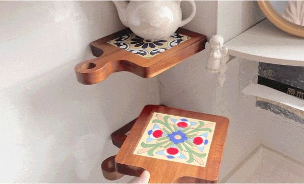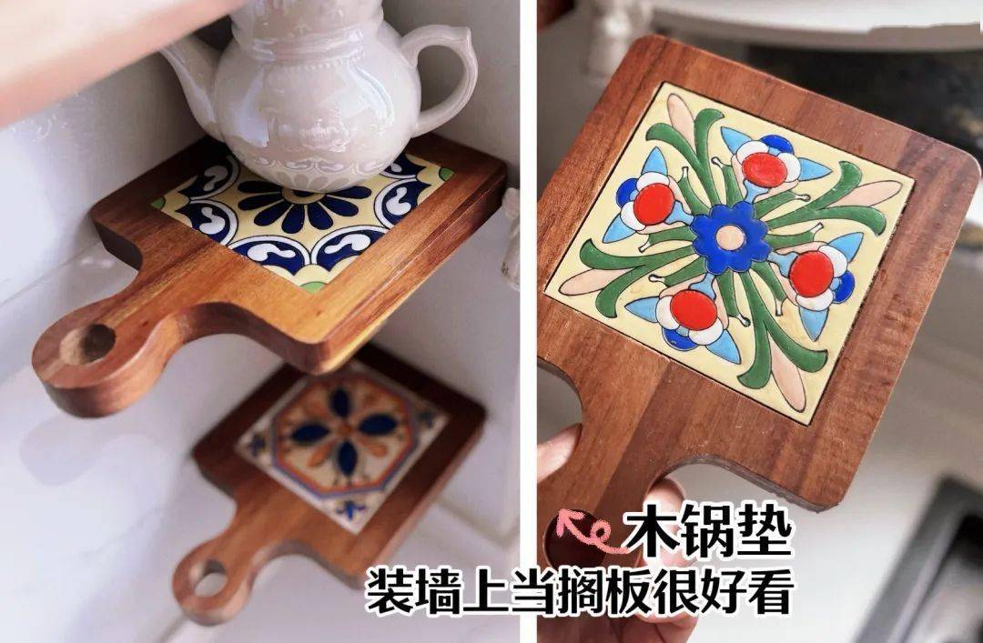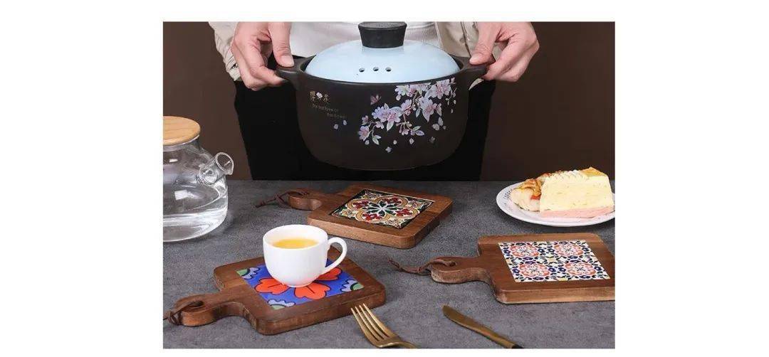 锅子隔热垫,木质的,上面有好看的瓷砖。
