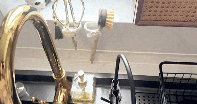 厨房水槽前粘两个放放剪刀、刷子什么的真的特别方便!随取随用!