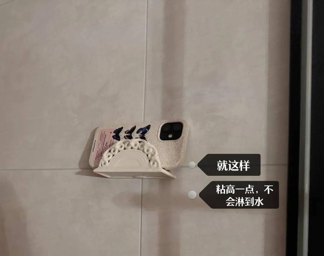 我把它粘在浴室墙壁上,洗澡的时候,手机可以搁这儿放音乐听书之类的,超级惬意就是了。
