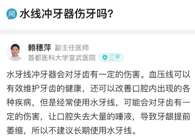 下图是我从网上截取的一些牙医对待水牙线/冲牙器的危害缺点分析:
