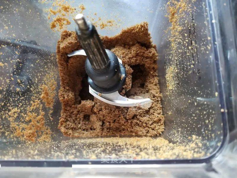 3. 烤脆的大地鱼扳小块,放入料理机。(精致的可只取鱼肉,我连头连尾一起放进去打了。)