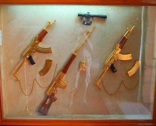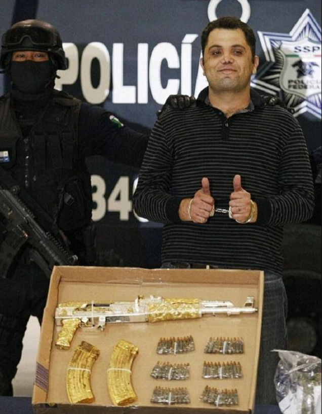 墨西哥一黑手老板拉米罗·波佐斯·冈萨雷斯被抓捕时发现了他随身携带一把黄金AK-47突击步枪,当然用黄金做也好看不到哪里,主要还是为了炫耀地位。