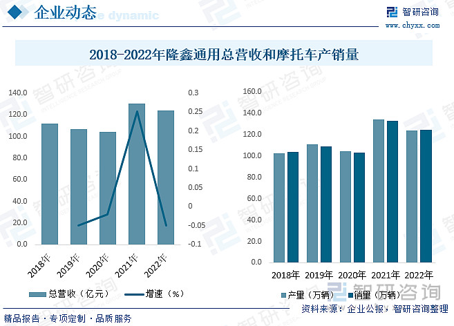 隆鑫通用是我国重要的摩托车生产企业,产品主要包括两轮摩托车、三轮摩托车、摩托车发动机、全地形车、通用机械和充电桩。三轮摩托车主要包括 110-300cc 运输车、客运车、物流车、环卫车、特种车及电动三轮车等产品,可满足消费者工作和生活的运输需求。经营现状而言,隆鑫通用总营收2020年及以前受整体摩托车产销量波动影响,营收小幅度下降,2021年整体摩托车需求大增,隆鑫通用产销量大增,营收明显增长,2022年隆鑫通用产销量小幅度下降,分别为124.18万辆和124.79万辆。
