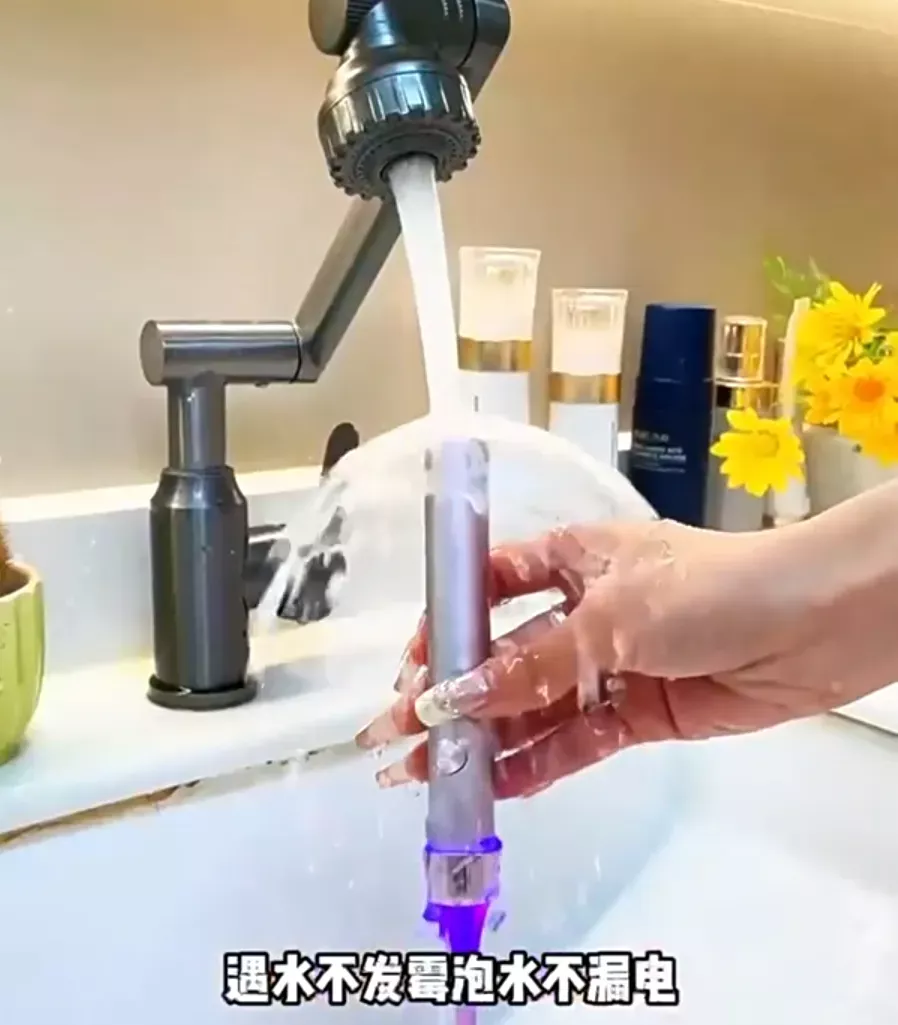 IPX7级防水,平时刷完牙,整个机身都可以直接用清水冲洗~平常放置在浴室,也不用担心水汽进入内部,影响内部零件的使用时间~