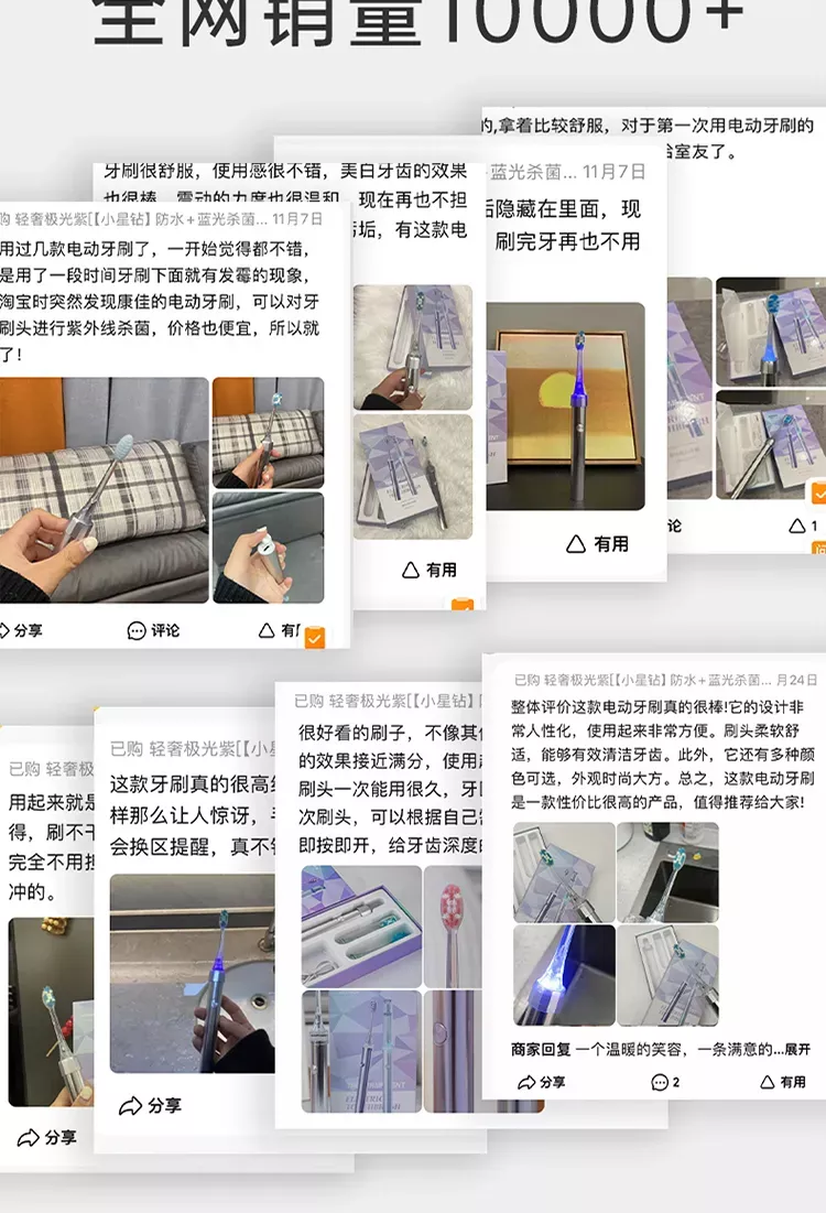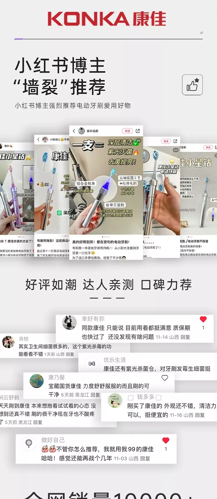 在各大平台也是众多博主强烈推荐的,还有不少明星直播间也纷纷种草这款【康佳·小星钻紫光电动牙刷】