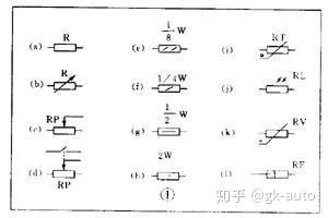 在某些电路中,对电阻器的功率有一定要求,可分别用图 1 中( e )、( f )、( g )、( h )所示符号来表示。