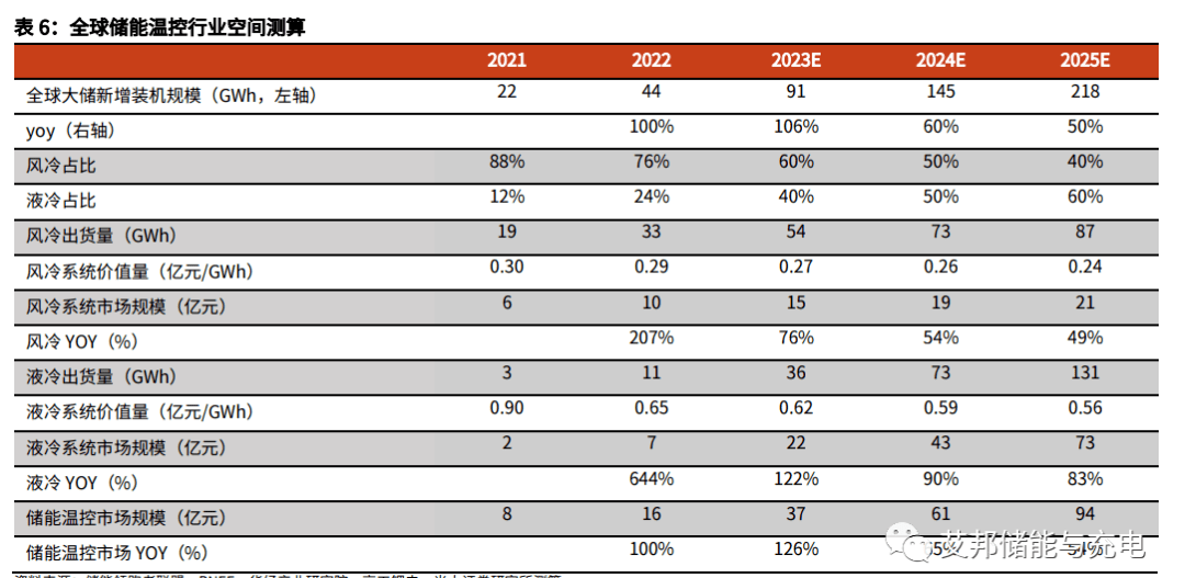 2025年预计全球储能温控市场规模达94亿元。