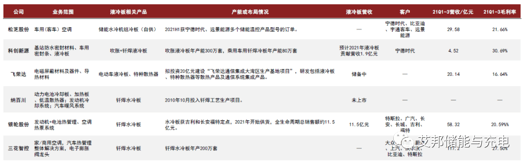 松芝股份原先主营客车空调业务,21年松芝切入储能温控领域,其液冷温控系统中的液冷板以自制为主,采用的是吹胀工艺;飞荣达(16.600,1.14,7.37%)于2021年公告投资建设液冷板项目,目前还未量产。