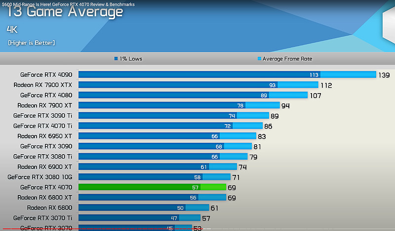 所以显卡推荐型号性能从弱到强为:6800,6800XT,6950XT,7900XT,4080,7900XTX,4090这7款。