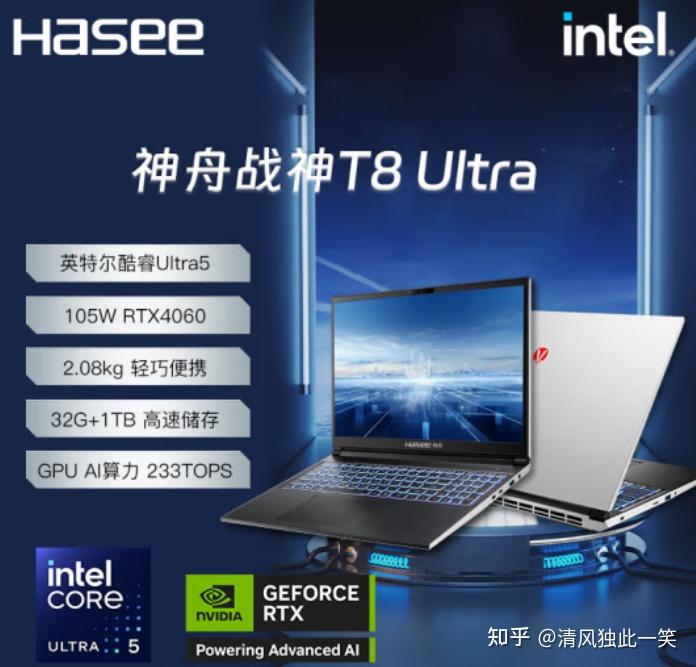 一款相对轻一些中高档游戏本,相对比较全面;搭载了酷睿Ultra处理器,能效大大提升,AI算力更强;16英寸2.5K高清屏幕,高色域,240Hz超高刷,屏幕不错;外设接口非常全面;散热不错;适合中度的游戏、视频剪辑、图形设计等适用场景;相对T8 Pro、T8 Plus等游戏本来说T8 酷睿Ultra更轻、散热差一些、外设接口也更全;作为小众品牌笔记本,售后覆盖可能不是很全面,购买前跟客服确认清楚售后范围。