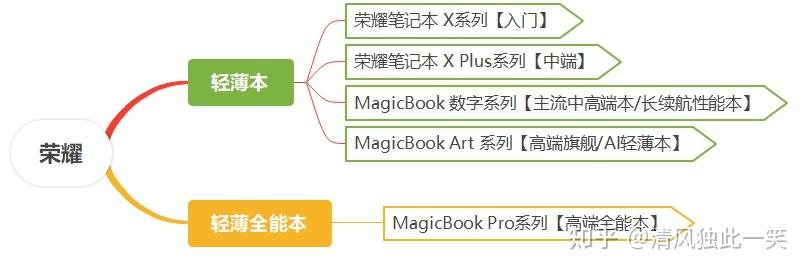 进入笔记本市场较晚,产品竞争力越来越强。荣耀笔记本可以配合荣耀手机使用,比如多屏协同等功能。目前笔记本产品线比较简单,主要是轻薄本: