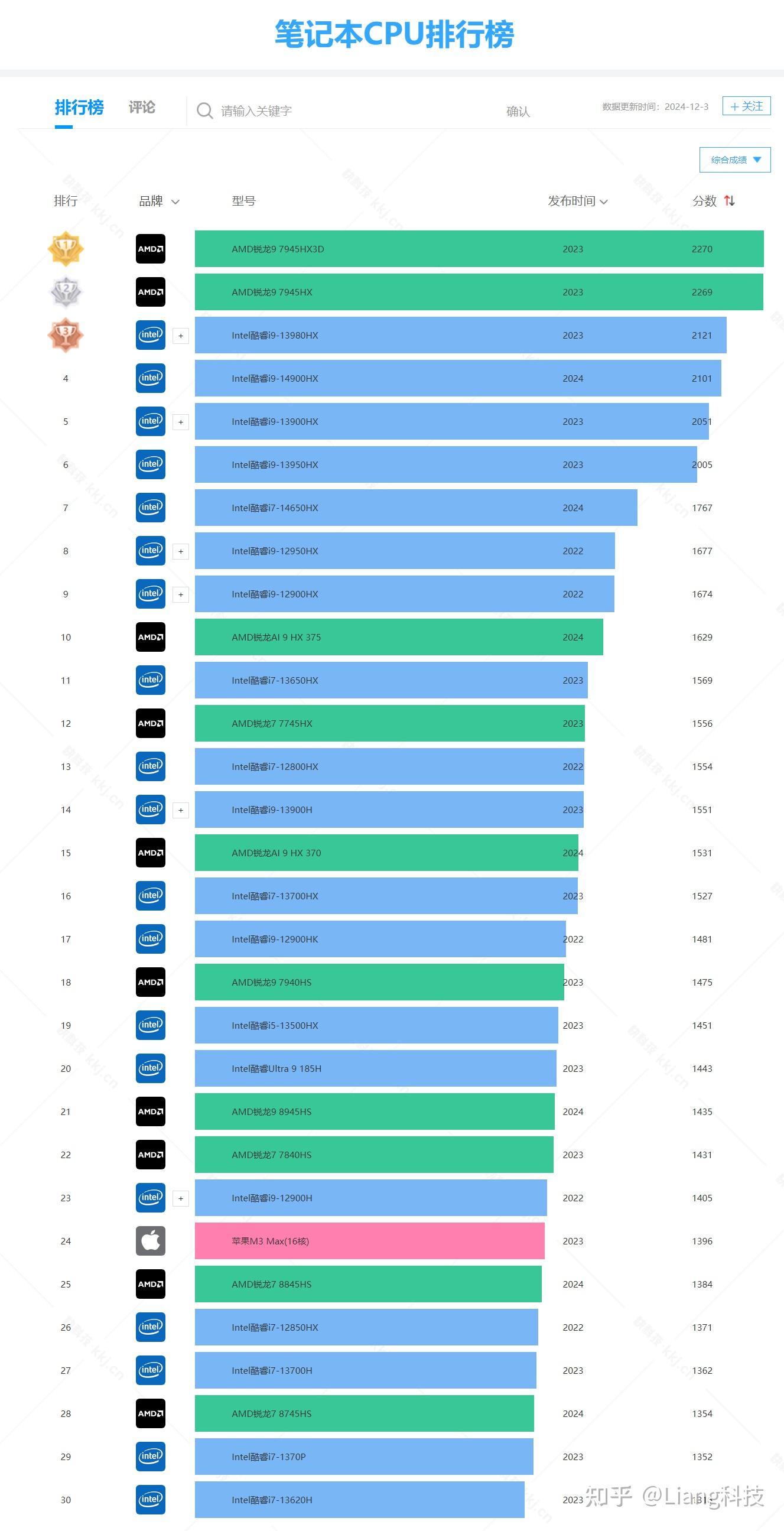 下面的这份“笔记本CPU性能排行榜”,排名越靠前,代表着电脑的流畅性更强。当然,排名靠前的这些CPU目前只搭载在一些高端旗舰机上,价格昂贵。
