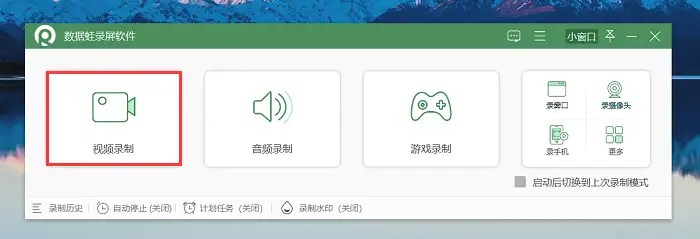 操作环境: 演示机型:联想Ideapad 700-15ISK-ISE 系统版本:Windows 10 软件版本:数据 蛙录屏软件1.1.12步骤1:在数据 蛙官方网站上下载并安装数据 蛙录屏软件,启动软件后,您可以选择适合您的录制模式。