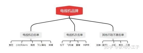 数据来源于权威市场调查机构Omdia “22年全球电视市场份额百分比”那么接下来我来聊聊电视机的白名单、灰名单、其他名单: