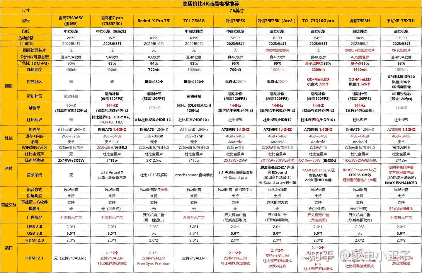 家电小王子:2024小米电视推荐!19款“白名单”+17款“灰名单”整理!含43/50/55/65/70/75寸!家电小王子:2024年值得买(液晶+OLED)索尼电视推荐!含50/55/65/75/85寸型号对比!(万字长文)