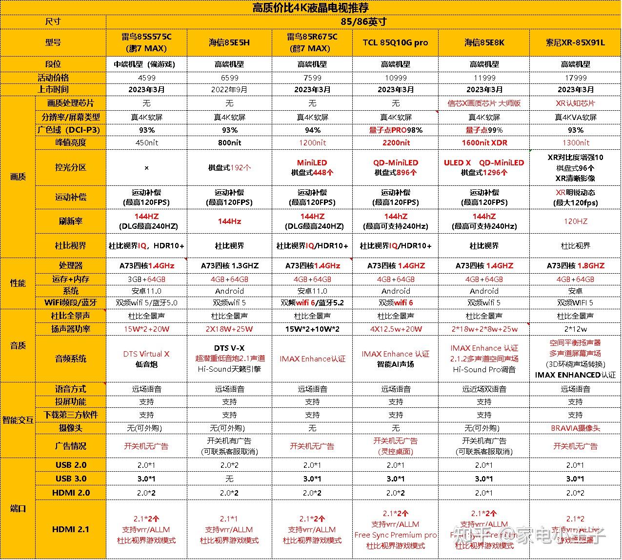 档次:高端机型上市时间:22年9月全网最便宜的85英寸高端超大屏!海信传统老厂,高端机只要6k+元,性价比很高。