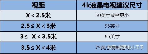 以一般大家多选的4K分辨,大家普遍能接受的视距为基准,大致总结了以下视距和建议尺寸的一个关系表。直接抄作业。