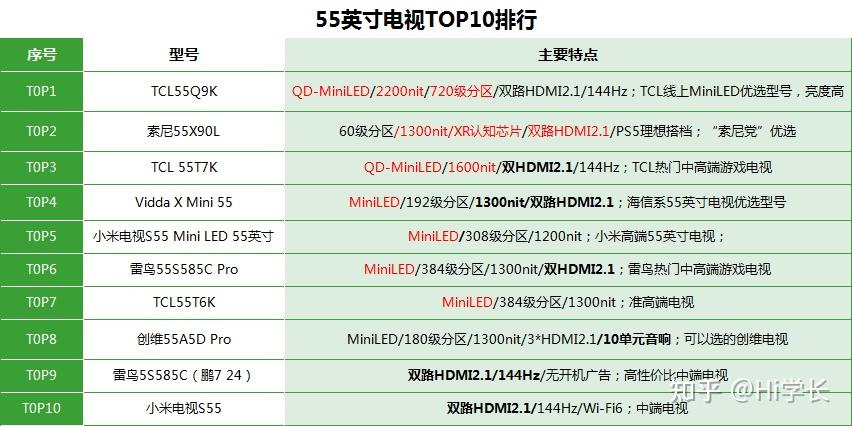 本文从目前各主流品牌在售的二三十款55英寸电视里,精心挑选出10个最具代表性的型号,并按照相应标准做出了这个TOP10型号榜单,旨在帮助有选择困难症的用户能快速选到适合自家实际情况的电视。