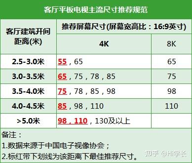 55英寸电视适合观看距离在2.5-3.0m的用户选择;观看距离和电视尺寸如何选可以参考下面这个表格: