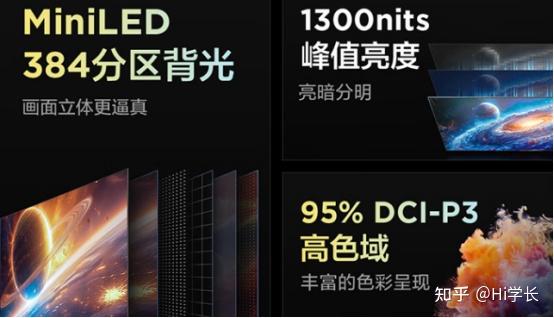 720控光分区、峰值亮度2400nit,控黑效果非常出色,“超高亮度+超多分区”带来更加出色的动态对比度,能呈现更多暗部细节,亮场爆发力更强,是目前同价位段分区数量最多、峰值亮度最高的型号;支持98% DCI-P3量子点广色域,相比普通广色域能显示更多更纯正的色彩,颜色层次过渡更自然;