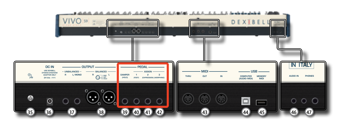 数字钢琴为了让自己更像是原声钢琴,通常都会配备这样的三踏板。比如Dexibell的VIVO H系列数字钢琴以及Nord的Piano跟Grand系列,出厂都会配备原装三踏板。甚至一些比较高档的逐级配重MIDI键盘,也有配套的三踏板可供选择,如Studiologic的SL系列MIDI键盘。