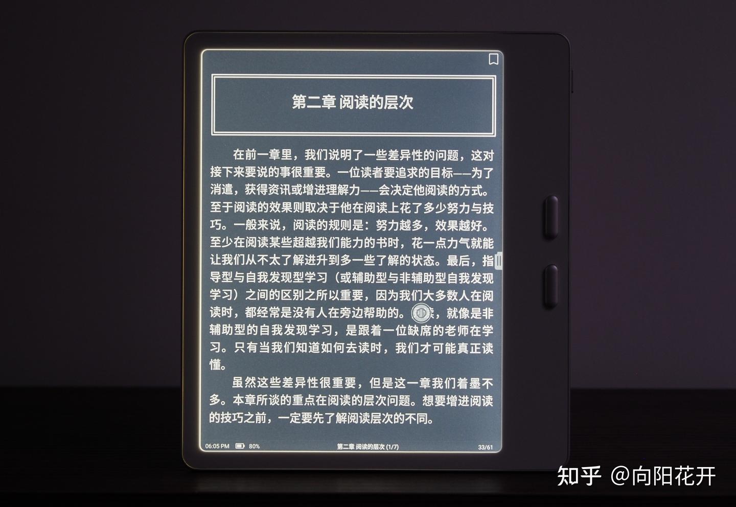 进阶一点,根据不同人的需求,你可能需要关注:是否带背光(电纸书叫前光)?是否对 PDF、外文等优化?是否支持音频播放?手写支持、调光模式、墨水种类、是否支持全局深色模式等。