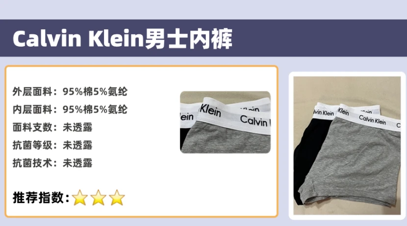 从综合角度看,Calvin Klein男士内裤在质量、舒适度和抑菌性能等方面均表现中规中矩,但是架不住品牌力足够强,而且设计风格也确实比较简约时尚。然而,由于品牌溢价的影响,其性价比相对一般。