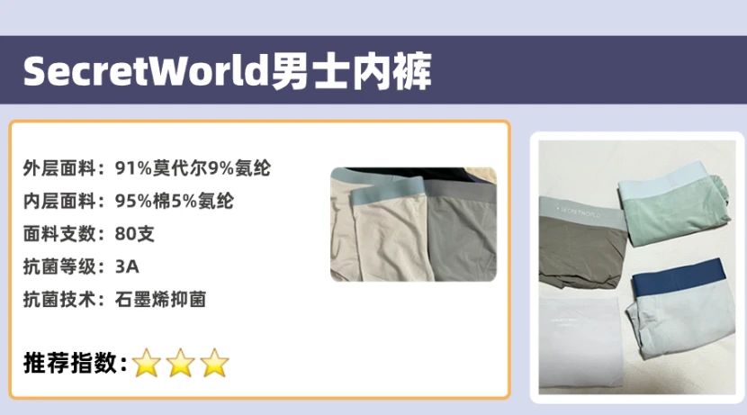 经过综合实测,SecretWorld男士内裤在石墨烯抑菌方面表现出色,但抗菌级别仅为3A等级。同时,虽然高弹力设计能够适应不同腰围,但长时间穿着可能会因高弹力而产生一定的束缚感。