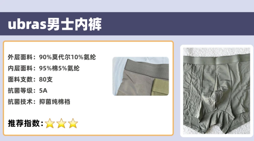 值得一提的是,它在抗菌标准上达到了5A级标准,即使经过100次水洗,其抗菌效果依然稳定有效。综上所述,ubras男士内裤在质量上表现优异,耐穿性尤为突出,但在舒适性与透气性方面尚存一定的提升空间。