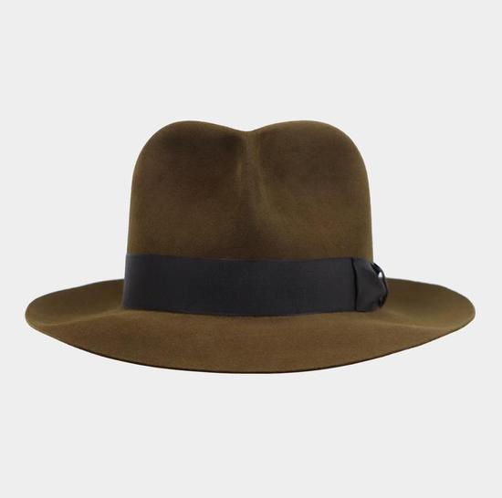 Herbert Johnson 一般以定制为主,你在店里能买到的普通成品帽子只有一顶,就是为电影《印第安纳•琼斯》制作的Poet hat,当然也叫Indy hat。这顶帽子我试过,戴了有点奇怪,不过旁边一个高个子老外戴了非常的好看,而且这老外还穿了件深棕色长风衣,戴了这帽子更显帅气,另我羡慕不已。